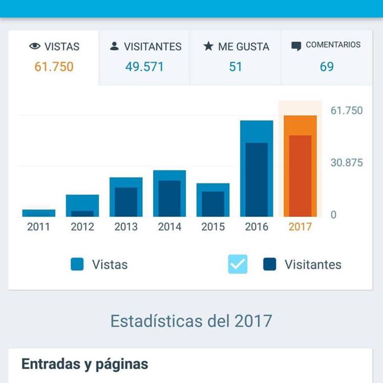 Hola amigos lectores, amigos del misterio. Hoy solo tengo una cosa que deciros ¡Gracias por sus visitas!… No tengo palabras para expresar sus asistencias diarias, hoy os pongo las estadísticas como años anteriores y en donde (cada vez somos más), aún queda unos meses para el término del 2017 y como no, llevamos casi 1.000 visitas más que el año 2016.
