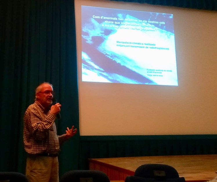 Hoy como siempre y llevando una gran cantidad de meses, vemos que se sigue hablando del cambio climático y tal ¿Verdad? Bueno, el tema esta en que, como siempre, la organización que se llama asociación catalana de los cielos azules (Cels Blaus) también, recuperando el cielo y devolvednos el cielo azul (torneu-nos el cel blau) son personal cualificado en su campo y en donde nos habla (como otras veces en las revistas anteriores) del dicho cambio climático, pero no solo de lo que ya sabemos, sino más bien de las conspiraciones que andan tras ese evento que todos sabemos o casi todos. Así pues, os dejo aquí unas palabras de el y vídeo de la ultima charla que dio el caballero .