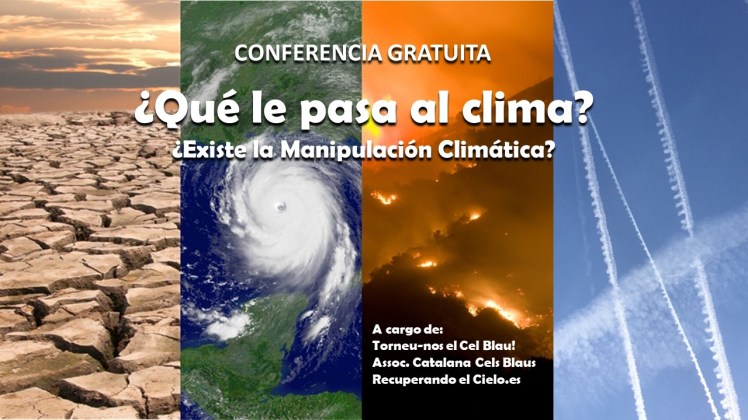 Hoy como siempre y llevando una gran cantidad de meses, vemos que se sigue hablando del cambio climático y tal ¿Verdad? Bueno, el tema esta en que, como siempre, la organización que se llama asociación catalana de los cielos azules (Cels Blaus) también, recuperando el cielo y devolvednos el cielo azul (torneu-nos el cel blau) son personal cualificado en su campo y en donde nos habla (como otras veces en las revistas anteriores) del dicho cambio climático, pero no solo de lo que ya sabemos, sino más bien de las conspiraciones que andan tras ese evento que todos sabemos o casi todos. Así pues, os dejo aquí unas palabras de el y vídeo de la ultima charla que dio el caballero .
