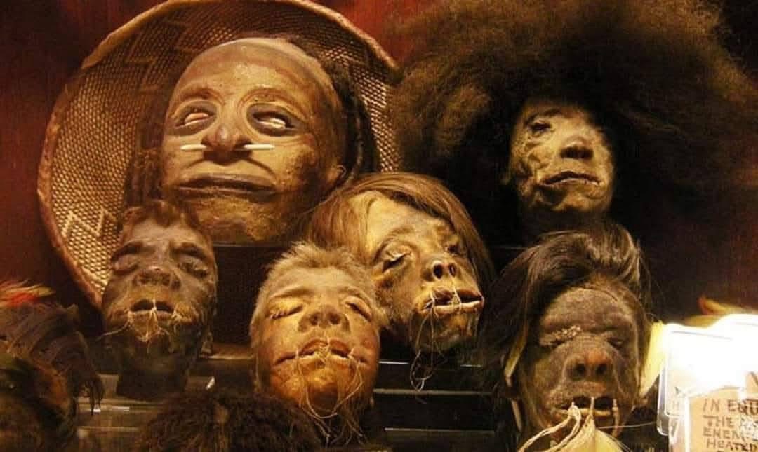 del pueblo indígena shuar de «reducir cabezas». Este místico procedimiento hacía que el nativo momificase y conservara las cabezas de sus enemigos como talismán y trofeo de guerra. La comunidad indígena Shuar, en la cuenca amazónica de Ecuador y Perú, es una de las pocas que los españoles nunca pudieron doblegar cuando llegaron a América.