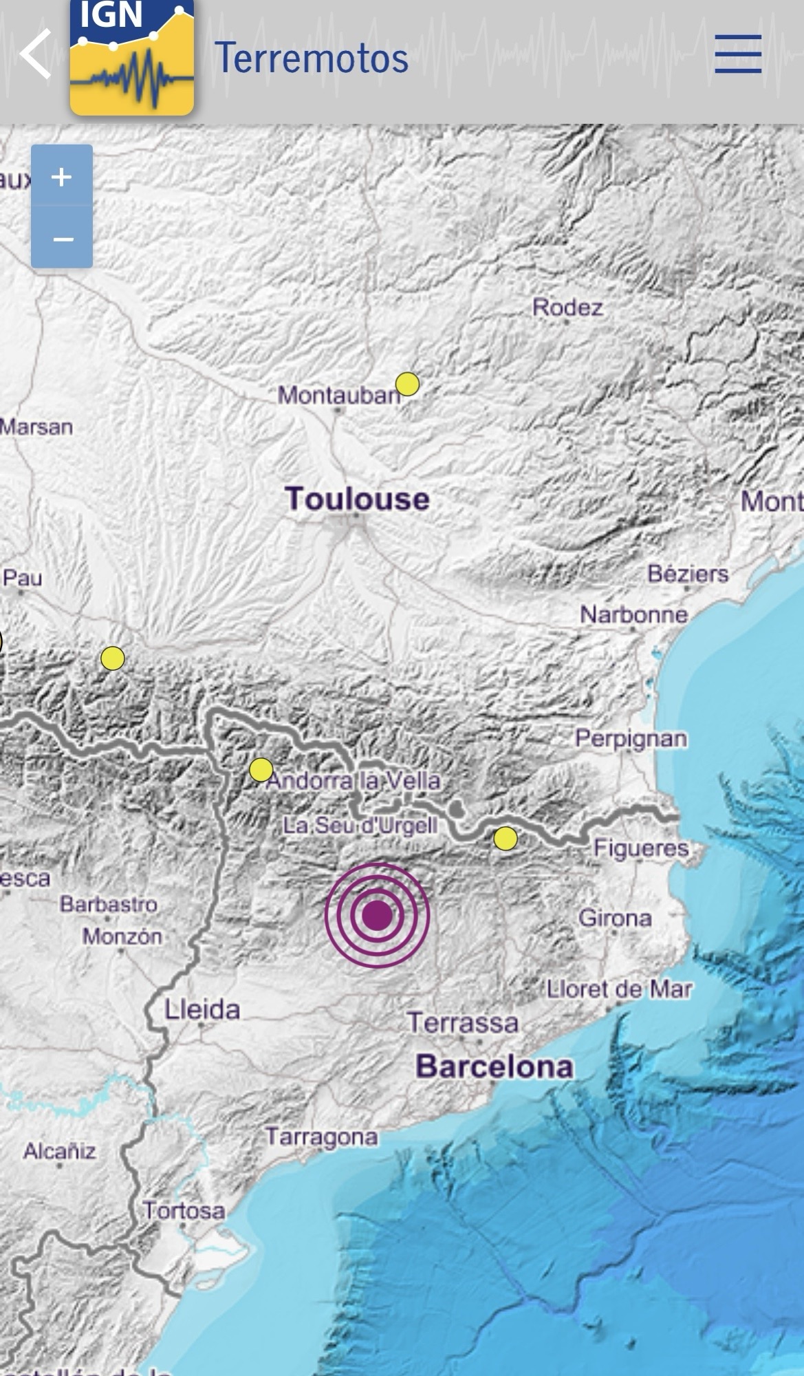 Otras zonas de España que se pueden ver. La verdad es que no todos son fuertes, pero muchos sí se sienten. Incluso, tenéis que alertar a tiempo real si o no has sentido alguno.