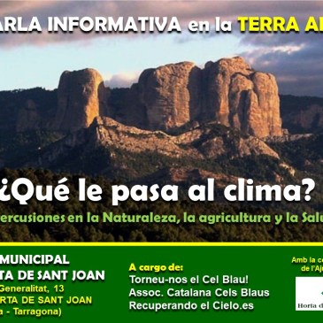 CAMBIOS EN EL CLIMA Hoy como siempre y llevando una gran cantidad de meses, vemos que se sigue hablando del cambio climático y tal ¿Verdad? Bueno, el tema esta en que, como siempre, la organización que se llama asociación catalana de los cielos azules (Cels Blaus) también, recuperando el cielo y devolvednos el cielo azul (torneu-nos … More Conferencias: “QUÉ LE PASA AL CLIMA” por Francesc Colet